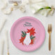 Fröhliche Weihnachts-Teller mit floralen Katzenpapieren mit einer niedlichen Katze und saisonalen Blumen.