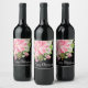 Personalisierte Schwarze Weinflaschen aus der Weihnachtszeit sind mit einer großen rosa Poinsettia, Blume im Winter, Kiefern und heiligen Blätter in schicken weißen Schriftzeichen versehen. PASSENDE Artikel in unserem Geschäft.