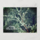 Frost funkelt auf einem immergrünen Zweig und macht diese Winterfotografie zum Weihnachtsfest. Die Wörter "Frohe Weihnachten!" erscheinen in der Schriftzeichen-Typografie, um diese Postkarte genau für das Versenden eines Urlaubssegments zu machen. Auf der Rückseite der Postkarte können Sie eine persönliche Note auf einem weichen grünen Hintergrund schreiben.