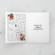 Weihnachtskarte mit einem Überraschungs-Labyrinth in der Karte. Niedliche handgezeichnete Grafiken eines Cartoon Santa Claus Gnome und Reindeer.