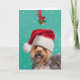 Schicken Sie diesen festlichen Yorkshire Terrier mit seinem kleinen offenen Mund in seiner Weihnachtsmannmütze und hängen unter dem Misteloe Zeh um jedem ein frohes Weihnachtsfest voller Liebe zu wünschen!