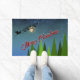 Der Weihnachtsmann und seine Rentiere fliegen in einer mondbeleuchteten Nacht über die Bäume.