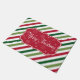 Fröhliche Weihnachtsanschauung mit Text- und Schneeflocken-Design auf rot, weiß und grün gestreiften Hintergrund