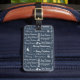 Fröhliche Weihnachtsillustrierung mit Text- und Weihnachtssymbolen auf blauem Hintergrund