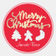 Frohe Weihnachten Gerahmt Tree Name Gold Red White Runder Aufkleber