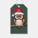 Dieses charmante Design zeigt eine detaillierte Darstellung einer braunen, weißen Eule, die auf einem Ast liegt. Die Eule trägt eine rote Weihnachtsmütze mit weißen Schneeflocken und fügt dem Festgeist hinzu. Seine köstlichen Augen ziehen die Aufmerksamkeit auf sich, während ein kleines rotes Geschenk mit weißem Band subtil am Fuß des Zweiges liegt, was die großzügige Natur der Partysaison nahe legt. Dieses Design erfasst die Hitze und die Weihnachtsfreude durch die Darstellung dieses Wintersymbolvogels im kosmischen und feierlichen Rahmen.