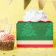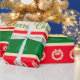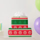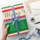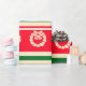 Design mit Weihnachtssymboldekoration auf farbenfroh gestreiftem Hintergrund