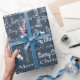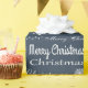Fröhliche Weihnachtsillustrierung mit Text- und Weihnachtssymbolen auf blauem Hintergrund