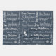 Fröhliche Weihnachtsillustrierung mit Text- und Weihnachtssymbolen auf blauem Hintergrund