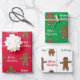 Wrap deine Weihnachtsgeschenke mit diesem niedlichen Geschenkpapier Set, mit Lebkuchen Mann und Mädchen. Rote, grüne und weiße Hintergrundfarben.
