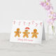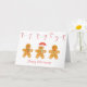 Niedliche Abbildung von drei Lebkuchenmännern in Ferienkleidung. Weihnachtsmannmütze, Winterschals und niedliche bunte Knöpfe sorgen für ein fröhliches Urlaubserlebnis. Die Lebkuchenmänner sind ein wesentlicher Bestandteil der Weihnachtszeit, und dieses Design ist perfekt, um in dieser Saison zu jubeln!