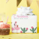Fröhliche Weihnachten Niedlich Pink Flamingo Cactus Wrapping Paper zeigt niedlich festliche rosa Flamingos mit Geschenken, Ballons und Kakteen Pflanze. Der Text lautet "Frohe Weihnachten glücklich Neues Jahr" in der modernen Schrift. Ideal, um diese speziellen Geschenke zu Weihnachten zu verpacken. Von Evco Holidays entworfen www.zazzle.com/store/evcoholidays