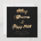 Frohe Weihnachten und Glück 2024 Typografie Elegant Black and Gold, Imitate Gold Foil Text und Streifen auf schwarzem Hintergrund, Moderne Drehbuch, Chic Christmas & Silvester Card