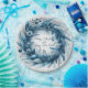 Auf einem funkelnd, weißen Weihnachtsgeschmack sitzt dieser hübsche blaue Kranz mit dem Haupttext "Frohe Weihnachten und Glück im neuen Jahr"