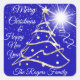 Frohe Weihnachten & Glück Neujahr Gold Royal Blue Quadratischer Aufkleber