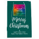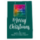 Eigene Weihnachtsgeschmack Neujahr Typografie Skriptname Fügen Sie hier Ihr Firmenlogo oder Image hinzu. Elegante moderne Template Pine Tree Green & White Medium Geschenktasche.