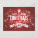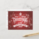 Moderne rote Weihnachtskarte mit Urlaubswünsche auf der Rückseite der Karte.