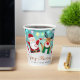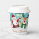 Frohe Weihnachten Glück Neujahr Weihnachten Niedliche Kaffeepapiere Cups zeigt einen skurrilen Weihnachtsmann und Rentier mit dem Text "Frohe Weihnachten und Glück Neues Jahr". Ideal für Weihnachts-Party-Feiern. Von Evco Holidays entworfen www.zazzle.com/store/evcoholidays