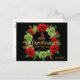 Personalisieren Sie diese modernen Postkarten mit Hintergrundfarbe in Schwarz und Weihnachtskranz. Frohe Weihnachten und glückliches neues Jahr in RED. Fügen Sie den Familiennamen vor oder löschen Sie ihn. Rückseite der Karte editierbar mit der Option hinzufügen oder löschen, um Handschrift Nachricht.