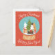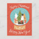 Frohe Weihnachten und glückliches Neues Jahr Design auf rotem Hintergrund mit Weihnachtsbaum, Geschenke und Schneemann.