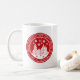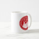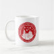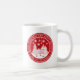 Frohe Weihnachten glückliche Ferien Winter Personalisierter Name Kaffee Tee Tasse bietet den Text "Frohe Weihnachten und glückliche Feiertage" in modernen weißen Drehbuch auf einem roten Hintergrund und personalisiert mit Ihrem Namen rund um eine Zuhause mit Weihnachtsbäumen und Schneeflocken. Ideal für Weihnachtsgeschenke und Gastgeschenke. Entworfen von ©Evco Studio www.zazzle.com/store/evcostudio