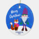 Frohe Weihnachten Gnome Fox Snowflakes Blau Keramik Ornament