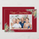 Diese stilvolle Weihnachtskarte ist mit festlichem Wasserfarbenfolien und Beeren in Rot, Grün und Gold auf einem maronroten Hintergrund dekoriert. Einfach mit Ihrem Namen und Foto anpassbar. Weil wir unsere Kunstwerke erstellen, werden Sie dieses exakte Bild von anderen Designern nicht finden. Original Wasserfarbe © Michele Davies.