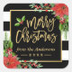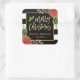 Frohe Weihnachten Gold Script Lettering Blumendeko Quadratischer Aufkleber