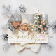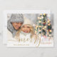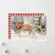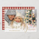 Gold Frohe Weihnachts-Script-Fotokarte mit Kariertem Rot-Weiß-Muster auf der Rückseite.