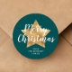 Frohe Weihnachten Gold Star Green Runder Aufkleber
