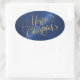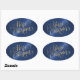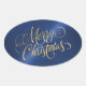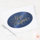 Frohe Weihnachten Gold und Blau Embossed Look Ovaler Aufkleber