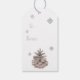 Aquarellgraues Vogelhaus mit Poinsettien, roten Heiligbeeren und Kiefernkegel mit dem Wort "Frohe Weihnachten" in einem grauen verzierten typografischen Schriftart. Die Rückseite des Tags hat Platz, um zu schreiben, an wen das Geschenk geht und von wem es stammt.