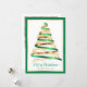 Diese wunderschöne Grußkarte mit dem Weihnachtsbaum in Grün und Gold auf grünem Hintergrund. Text "Frohe Weihnachten" und personalisiert mit Ihrem Familiennamen. Zurück zeigt Ihr Lieblings-Foto und Ihren eigenen Text. Ideal, um die Grüße der Saison an Freunde und Familie zu senden.
