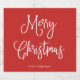 Diese einfachen und trendigen Urlaubsstipps sagen "Frohe Weihnachten" in rustikaler, weißer Handschrift auf einem hellen, urlaubserregenden roten Hintergrund.