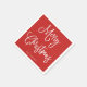 Diese einfachen und trendigen Urlaubspapier-Servietten sagen "Frohe Weihnachten" in rustikalem, weißem, handgeschriebenem Skript auf einem hellen, Feiertag roten Hintergrund.