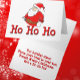 Frohe Weihnachten erhalten eine Ho Ho Ho Funny Weihnachtskarte. Wenn Sie diese Karte senden, werden Sie auf die Liste der Unbehagen des Weihnachtsmanns gesetzt. Diese lustige Weihnachtskarte mit ihrer farbenfrohen Original-Kunst zeigt den Weihnachtsmann in seltener Form. Wenn du zu frohen Weihnachten will, sind einige Geschenke besser als andere. Lest den lustigen Vers drinnen, um zu sehen, was wir gemein haben. ;) Schicken Sie diese lustige Grußkarte an Ihre verdrehten Freunde und Familienmitglieder und helfen Sie ihnen, in den Urlaubssgeist zu kommen. Für mehr lustige Weihnachtskarten Karo in unseren Geschäften unter zazzle.com/VicesAndVerses und zazzle.com/TheRightNote.