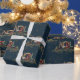 Mit diesem modernen Weihnachtspapier mit goldenen Schneeflocken, Weihnachts-Holly, Weißstern und "WEIHNACHTEN", das in einem farbenfrohen Schriftart auf blauem Hintergrund geschrieben ist, können Sie Ihre Urlaubsgeschenke verwöhnen. Ihre Geschenke werden unter dem Weihnachtsbaum besonders fröhlich aussehen