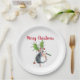 Niedliche Teller in der Urlaubssaison bieten eine skurrile Aquarellillustrierung des marschierenden Igels mit dem Zweig des heiligen und anpassbaren Textes "Frohe Weihnachten"