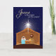 Diese illustrierte Krippenlandschaft mit Maria, Joseph und dem Baby Jesus in der Leitung ist eine niedliche und einfache Art, jedem Frohe Weihnachten zu sagen.