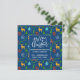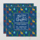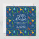 Feiern Sie diese Weihnachtsfeier mit diesem bezaubernden und niedlichen Weihnachtsmuster mit festlichem Hirsch, Weihnachtsbäumen mit Ziergegenständen, Schneeflocken und zahlreichen Blätter und anderen bunten Botanicals. Eine Reihe grüner Perlen, die die Tierpfade darstellen, vervollständigen das Muster. Blauer Hintergrund und personalisiert mit Ihren Weihnachtsdetails des Party.
