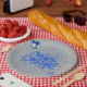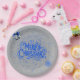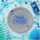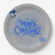Frohe Weihnachten in Blau auf Silber | Pappteller