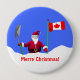 Ein Knopf mit meinem Originalbild des Weihnachtsmanns, der draußen im Schnee stehend ist und neben ihm eine Schneeschuppe mit der kanadischen Fahne hält und "Frohe Weihnachten!" schreibt.