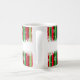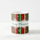 Fröhliche Weihnachtsanschauung mit Schneeflocken-Dekoration auf farbenfrohen gestreiften Hintergrund