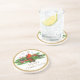 Diese Getränkeküste bietet Weihnachtsbaumzweige, Schneeflocken, Pinecones, Kichererbsen und Rote Kardinal. Ein festlicher Goldgruß-Glitzer Der frohe Weihnachtsgruß wurde unter dem festlichen Design hinzugefügt.