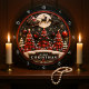 Feiern Sie mit diesem festlichen "Frohen Weihnachten" Rundschild. Es bietet eine atemberaubende Nachtszene mit dem Schlitten und Rentieren des Weihnachtsmanns, die über einen hellen Vollmond fliegen. Die Landschaft wird von drei eindrucksvollen Büffel-karierten Weihnachtsbäumen und roten Ornamenten dominiert, das Set vor einer dunklen, schneebedeckten Kulisse macht es zu einem kühnen und klassischen Urlaubspass.