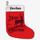 Personalisierte Weihnachtsfeiertage mit einem skandinavischen Strumpf, der ein frohes Weihnachtsfest wünscht. Die Einrichtung ist für die Urlaubssaison hervorragend. Vergessen Sie nicht, es mit einem Namen anzupassen.