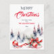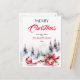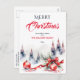 Frohe Weihnachten klassische traditionelle rote Baubles und rote Schleifen Schneebäume Aquarell Postkarte