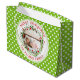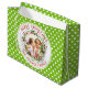 Frohe Weihnachtsblumenkranz und Kalkgrün und Weiß Polka Dot Muster Foto große Geschenktasche. Personalisieren Sie mit Ihrem eigenen Foto und Text.