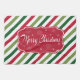 Fröhliche Weihnachtsanschauung mit Text- und Schneeflocken-Design auf rot, weiß und grün gestreiften Hintergrund