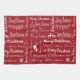 Fröhliche Weihnachtsillustrierung mit Text- und Weihnachtssymbolen auf rotem Hintergrund